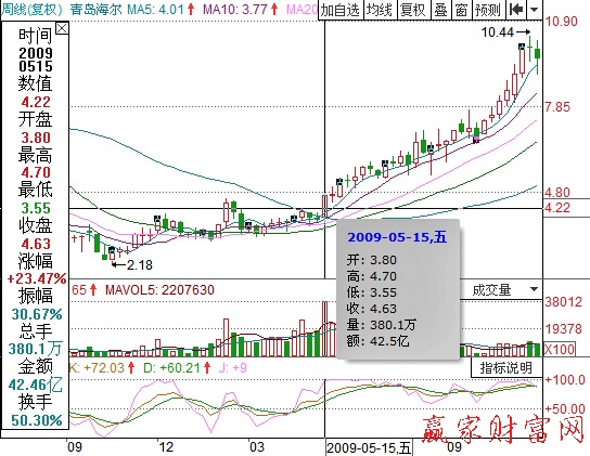 需要注意的是:当价格下跌到布林线的下轨时,即便受到支撑而出现回稳,KDJ指标也会同步上升,趋势转向的信号已经出现,但至多只能抢一次反弹。