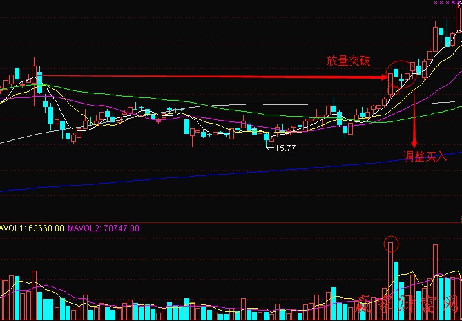 价涨量增:随着一段时间的下跌和盘整后,市场中逐渐出现诸多利好因素,这些利好因素增强了市场预期向好的心理,换手逐渐活跃。于是便逐步展现出价涨量增的形态。随着成交量的放大和股价的同步上升,这时是买股获利的黄金时期。