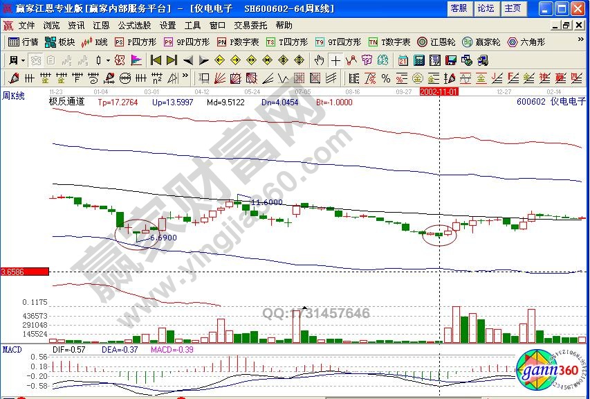 与此同时,赢家江恩软件中的极反通道工具也可以看出,该股二次探底的时候,股价在极反通道生命线附近,但是股价没有站上生命线依然是处于生命线下的弱势区域,因为此时的股价回调下跌的幅度不是很大,投资者还需要继续观察。