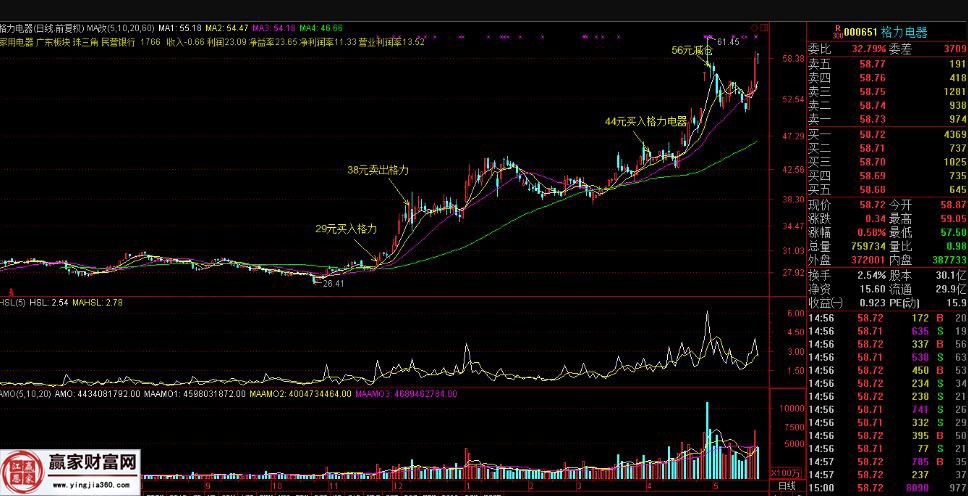 在看到该股后面上涨的时候,是非常的后悔啊,但是也只能够接受现实去冷静的对待每一次的交易。同时万万没有预料到央行放出了如此多的资金量,所以在14年12月9日的时,上证成交额直接创出了7500亿的额度,当然型号当时所持有的格力电器、中国平安、网宿科技有不错的涨幅,这才弥补上那个后悔心。格力电器的的走势图中有标出的介入价位。
