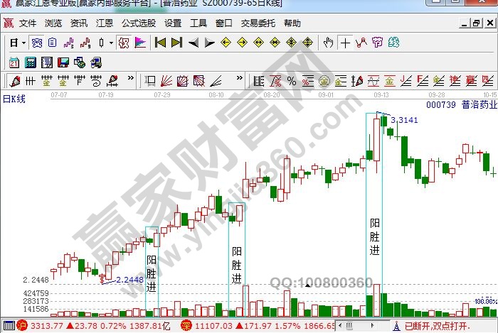 阳胜进其实就是主力主动性的攻击中量价齐升,既然主力发力了那么就是开弓没有回头箭,阳胜就是上涨趋势,你只要在实盘上涨趋势里抓住时机阳胜进,就可以把主力看的清清楚楚,那么你就跟上了主力的步伐,轻松就脱离了你的成本区,稳定性盈利就得到了保证。