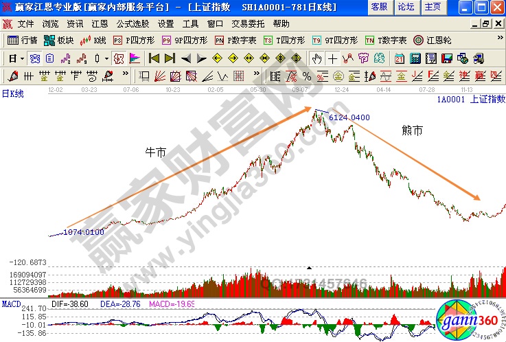牛市熊市就是股市内的循环现象,牛市是升市,大家都看好股价,一齐买进,股价愈炒愈高,继续上升,升到超过了它应有的实质价值.但仍然在升。