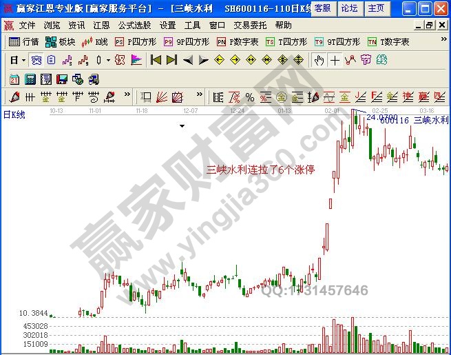 如图2所示,水利概念股票三峡水利(600116)也是从2011年1月26日开始拉了6个涨停。