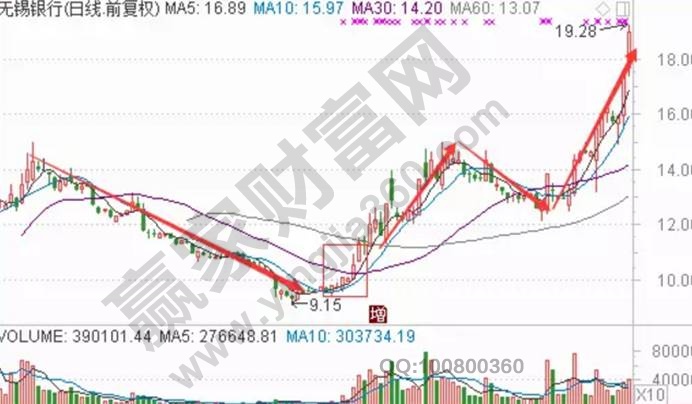 这个以无锡银行的走势来进行分析。下图中该股就是典型的右小角稳健企稳突破性的走势,在市场化总这样的形态是比比皆是的,但是投资者对于启动的把握是非常关键的。