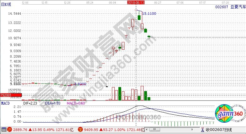 像2018年6月12日,亚夏汽车当天晚上没有出现特停的公告,那就可以断定13日亚夏汽车再涨停(如上图),非特定不可了。这个时候我们就要被选出深深宝A和中原特钢的这两只股票了,在136日这两支票哪个跟的最近,我们就要进行提前介入。坐等收割周五来做卡位龙头的资金。这就是提前介入法,用来应对常规的买法。