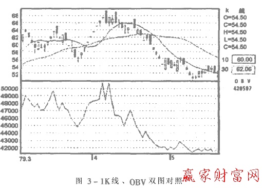 (8)特别注意OBV线与股价之间的背离( Divergence)现象,如果这种情况出现,暗示行情短期内会有变动。