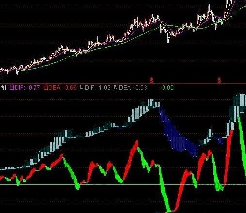 其实,我们都知道macd指标是有两条线组成的,还有两种柱线,一种是红柱线,一种是绿柱线,两则形成的面积也是判断个股买卖点和走势变化的方法。其基本的公式源码如下: