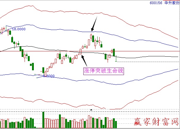 案例:华升股份(600156)涨停突破前期平台,追高买入,第二天高开获利,短线持股者可以设定止盈在涨停价(也就是