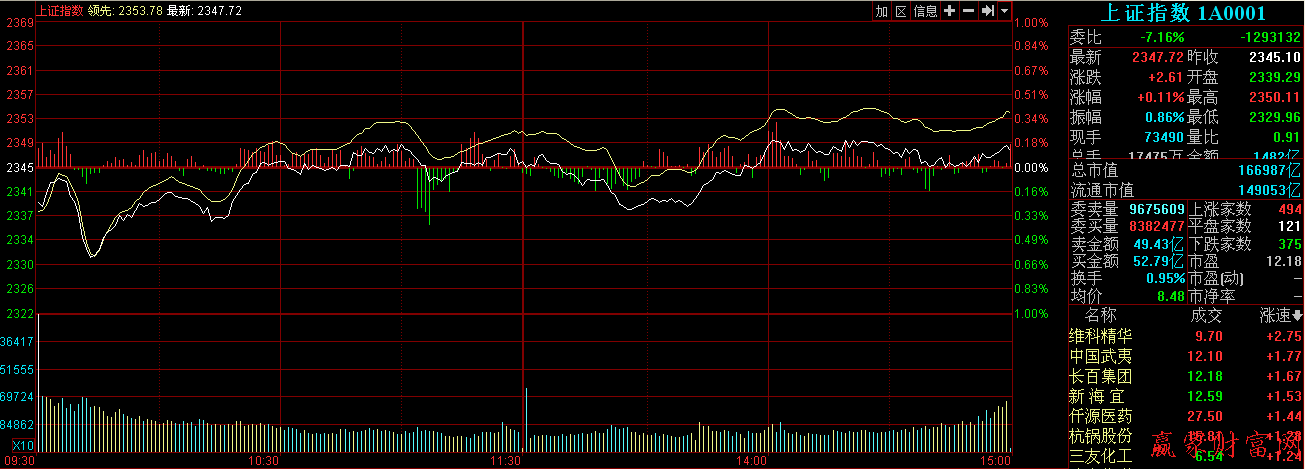 走势图的右边,是成交信息显示栏,包括实时的价格信息、成交信息、涨跌家数等信息。
