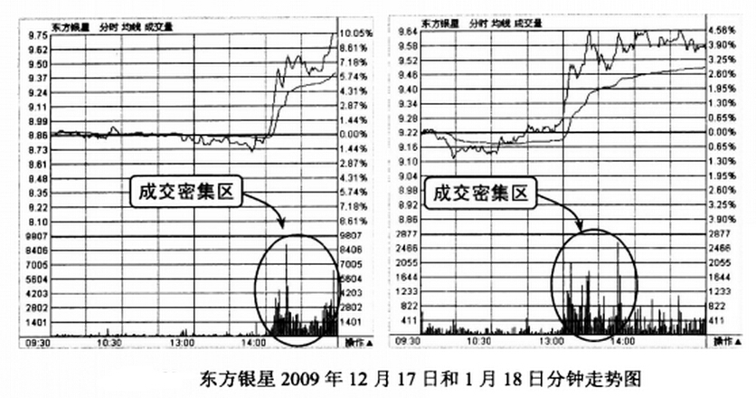 当然,第一次形成V形反弹后,我们只能等待下一次机会,幸运的是,在股价上涨到9.5元附近,出现一个高位倒锤形后,开始一路下跌,到2月3日,股价又一次触底,在8元附近我们发现多个底部反弹的K线图迹象。股民可以随着反弹的明确逐步买入股票,因为从前期的天量成交图中可发现有部分机构被套在上方,从12月17日和1月18日两个天量发生当日的分钟走势图中,可以发现大量集中交易的价格在9.5元到9.7元之间,如图4所示。