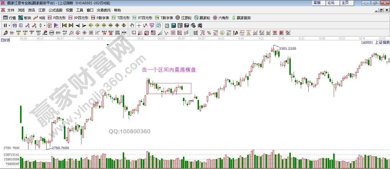 1.指数在一定阶段内持续在一个小区间之内横盘震荡,上涨和下跌的空间比较,这样的走势一旦向上突破或是向下跌破,都是比较大的变盘。