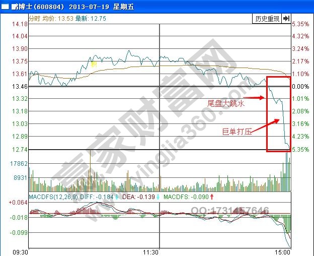 (3)在不长的一段时间内所跟踪个股连续出现尾盘遭打压的情况。