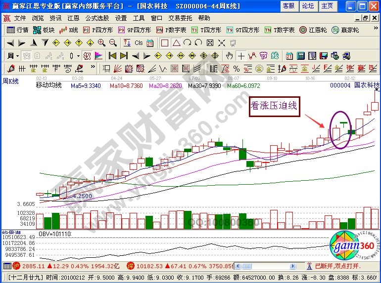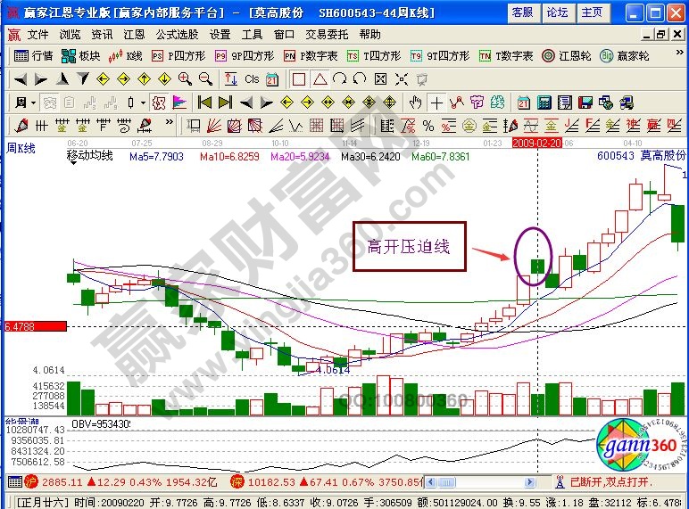 上图中的莫高股份,同样有高开压迫线的形成,其实它也是一种看涨压迫线,那么究竟看涨压迫线的特征是什么?接下来我们就可以进行详细的讲解。