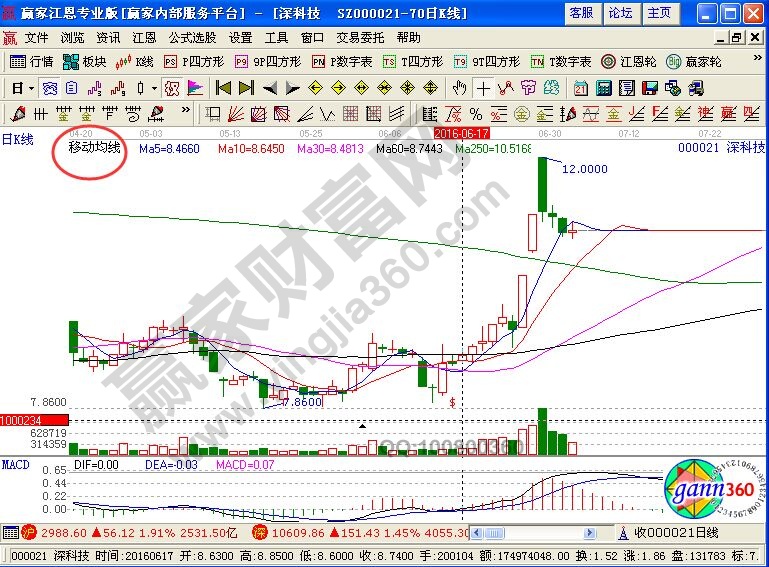 它是就是移动平均线,是将某一段时间的收盘价之和除以该走起,它能够帮助投资者去进行趋势的确认,判断将出现的趋势、发现过度延生即将反转的趋势!这里关于它的用法这里就不再做过的介绍,如果您想要了解,可以去进入本网站的均线图解栏目全面了解!