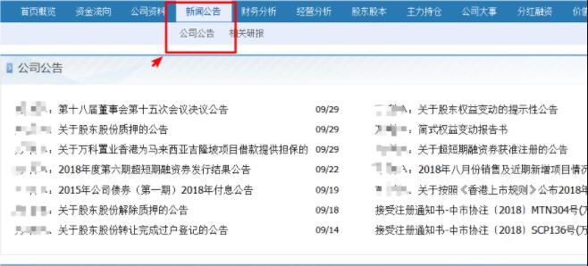 在股票资料页中,选择“新闻公告”,进入栏目中就可以查看这个公司各个季度的年报内容了;