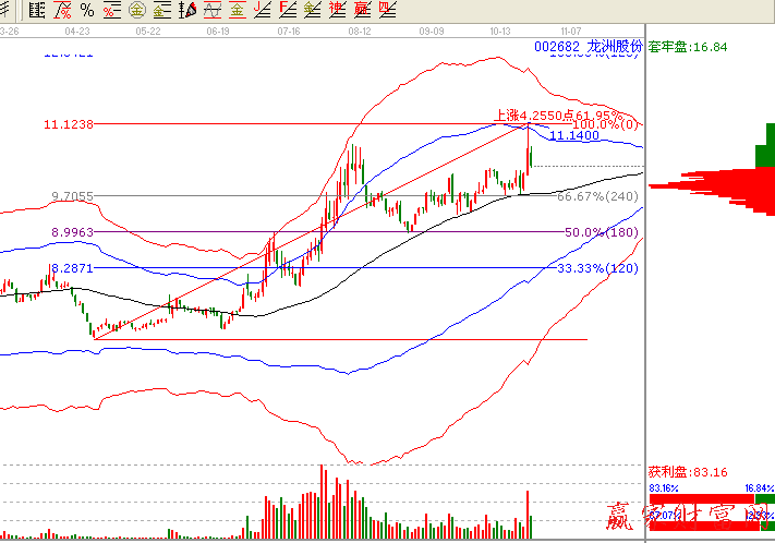 从图中获利盘来看该股近期获利盘比较多,可以理解抛压比较轻,不过后市要注意获利盘出逃的情况,一旦大盘跳水很容易导致获利盘不计成本的出逃。