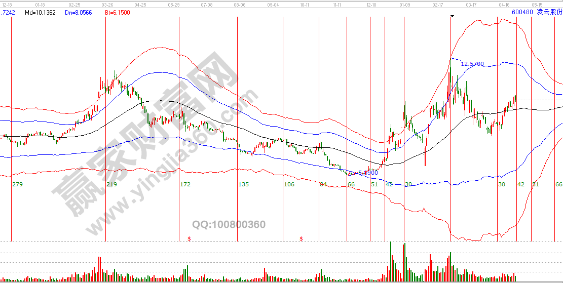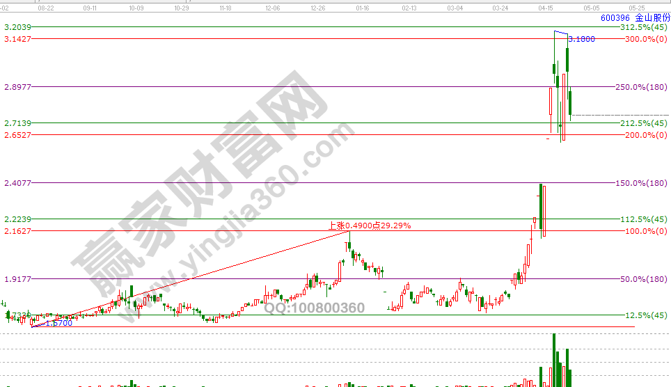 第四步:绘制江恩角度线。按照角度线制作规则,计算波动率,选择历史重要高点或是低点为起点完成作图,判断未来趋势强弱以及涨跌空间与重要点位。