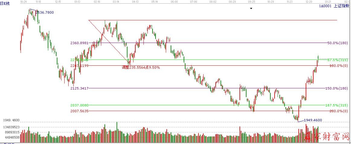 ★ 依据赢家波段百分比伸线提示:大盘突破315度位置压力2270看多,这里将构成一个重要的支撑位置,上方压力2360附近180度位置。