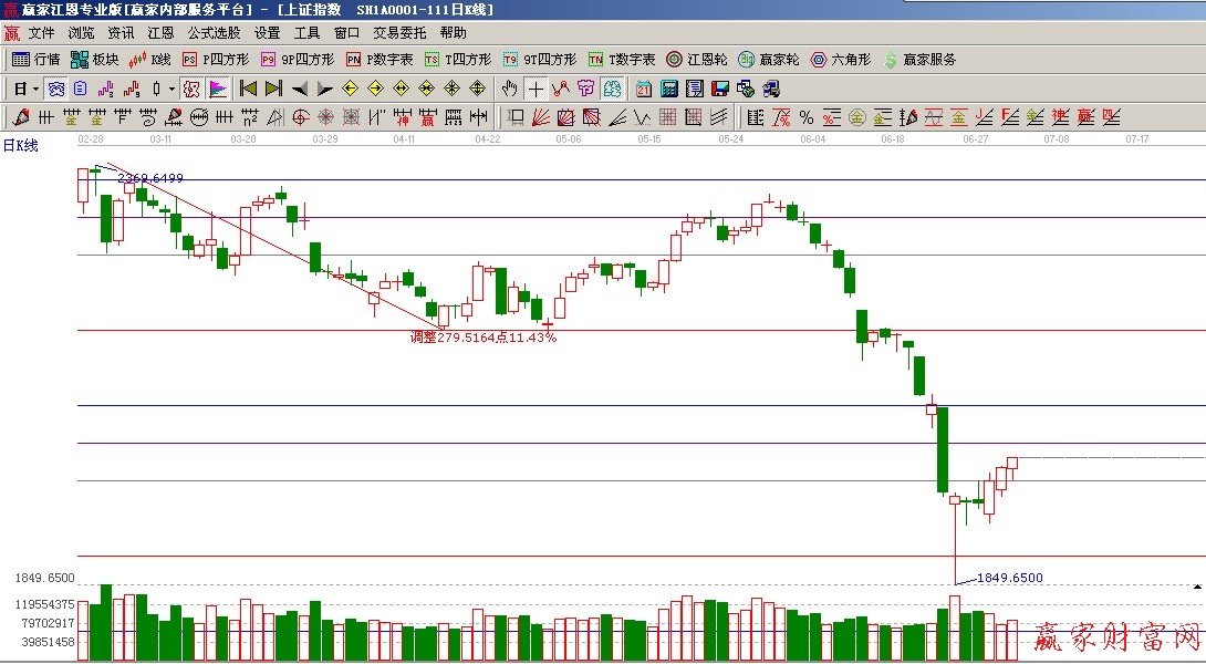☆依据赢家江恩系统乾坤K线提示: 收盘在短期出局线上,下一步将震荡修复关注线随后是大的方向选择;(1);