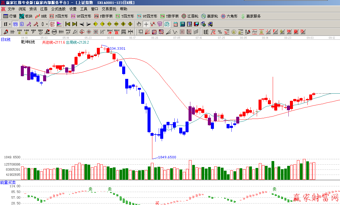 ★依据赢家江恩系统能量买卖提示:多头当前占据优势,主现红色柱子;(1)