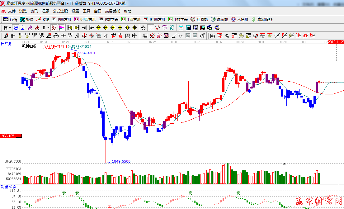 ★依据赢家江恩系统能量买卖提示:红色柱子逐步增加,多方占据主动权;