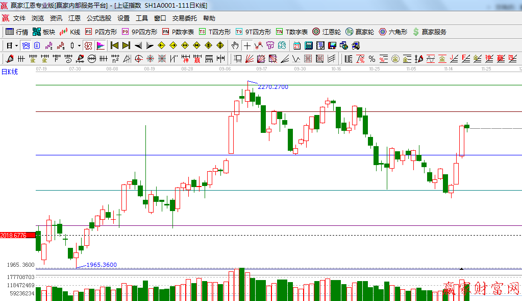 ☆依据赢家江恩系统波段百分比延伸提示:黄金分割价格图0.236位置是2219点,0.382位置是2050点;