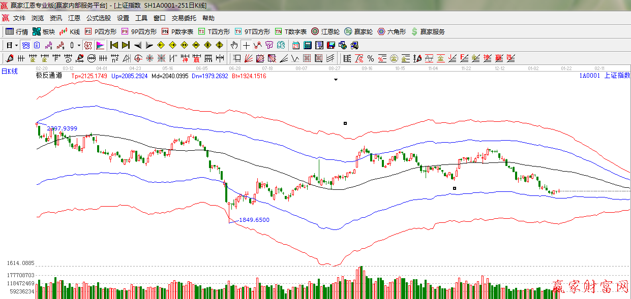 ☆  依据赢家江恩系统极反通道提示:量能比昨日略显放大,多空双方是在极反通道弱势下轨附近展开整理,多空双方略显谨慎,