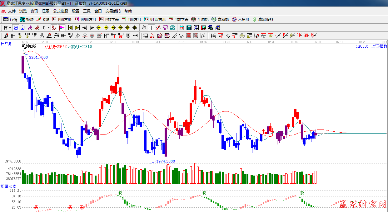 ☆依据赢家江恩系统能量买卖提示:目前绿色能量柱逐步消失,处于多空临界点,短期谨慎看多。