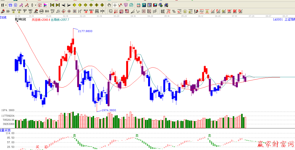 ★依据赢家江恩系统乾坤K线提示: 紫色k线回踩关注线,警示信号,谨慎看多。