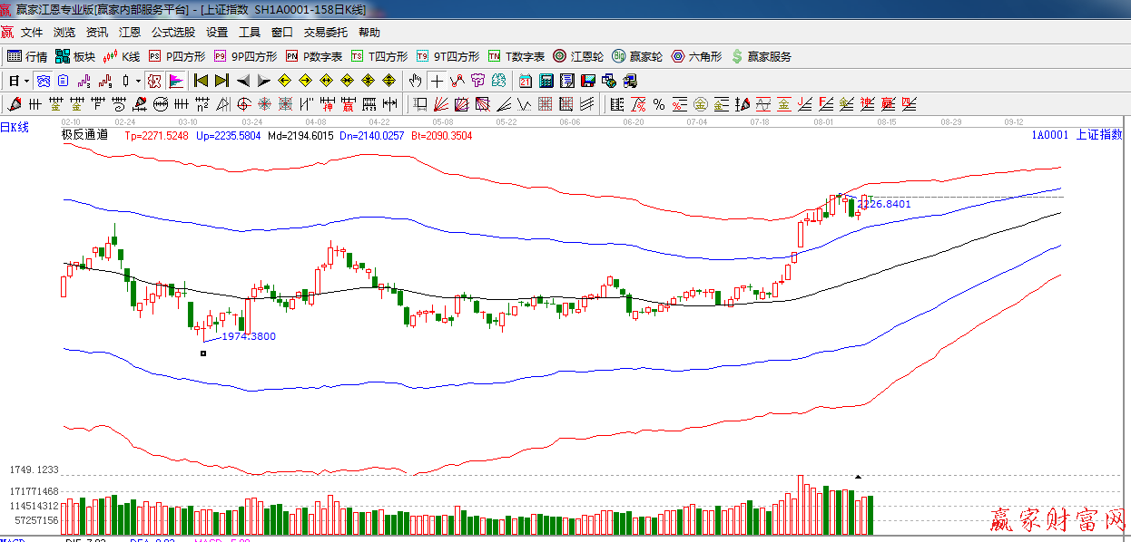 ★依据赢家江恩系统极反通道提示:指数探底回升,上方极反通道外轨线阻力2242点。