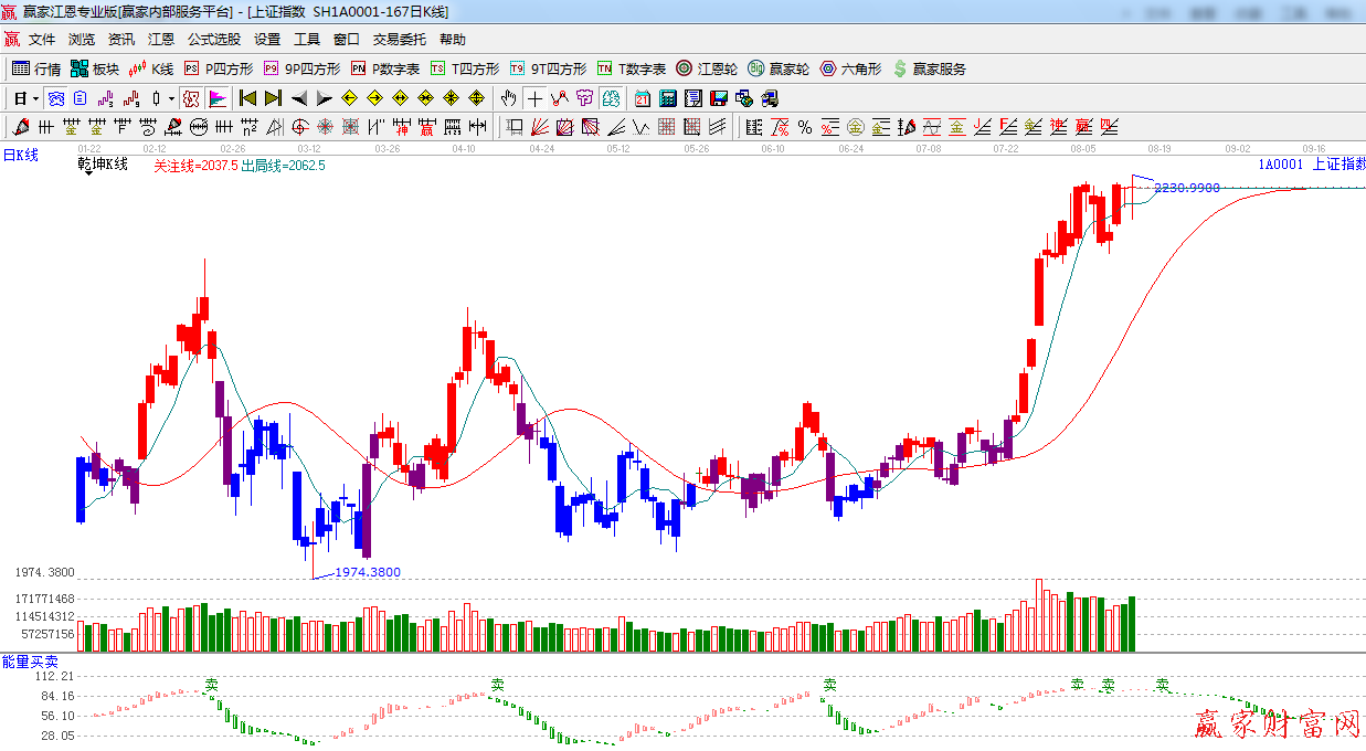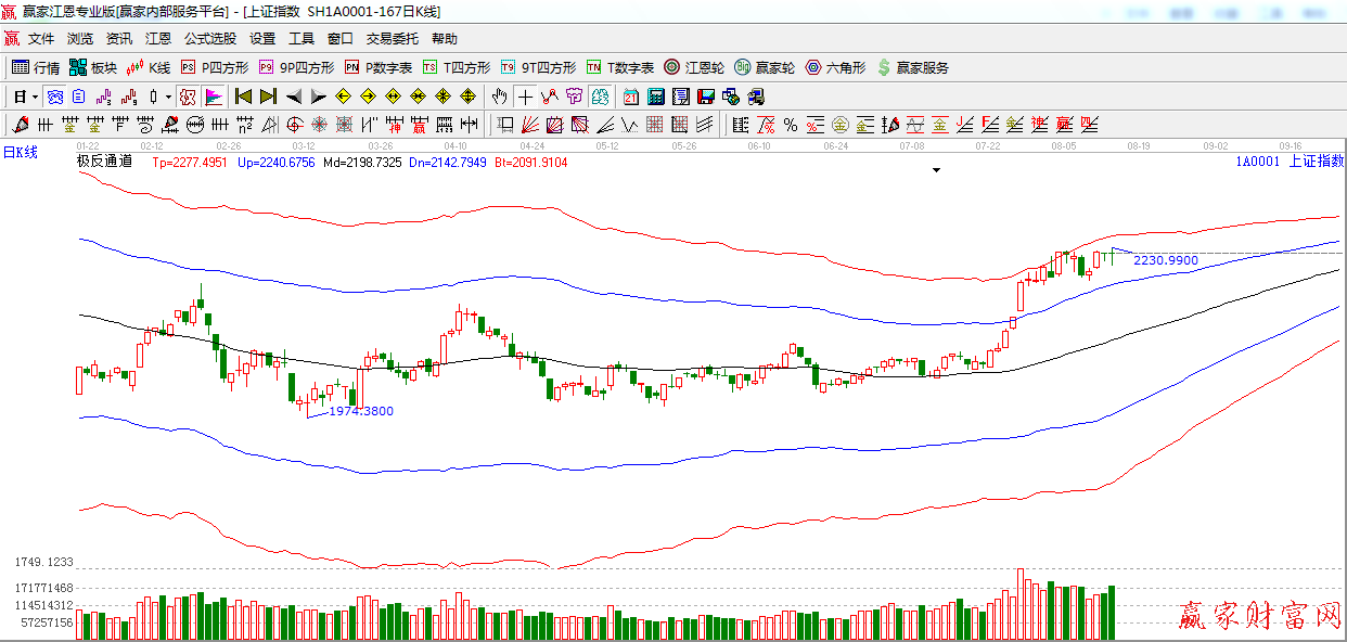 ★依据赢家江恩系统极反通道提示:指数探底回升,十字星报收,上方极反通道外轨线阻力2242点,短期有回踩蓝色线需求。