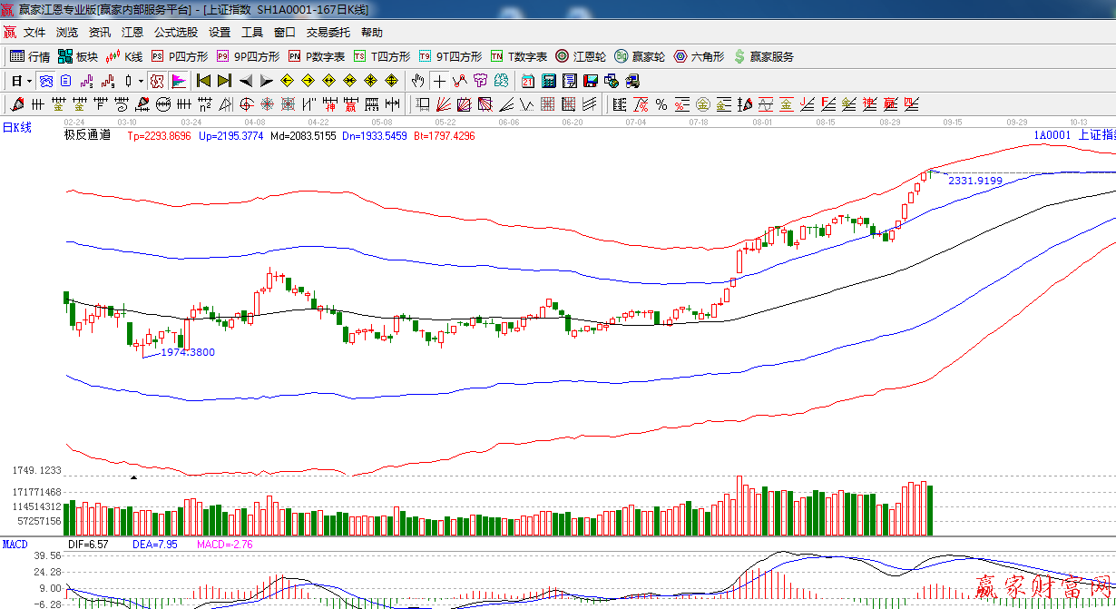 ★依据赢家江恩系统极反通道提示:上方面临外轨线阻力,阴十字星报收,短期谨慎看多。