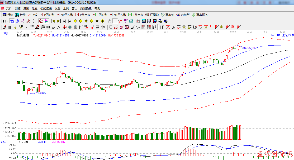 ★依据赢家江恩系统极反通道提示:外轨线之下高位震荡,小阳线报收,谨慎看多。