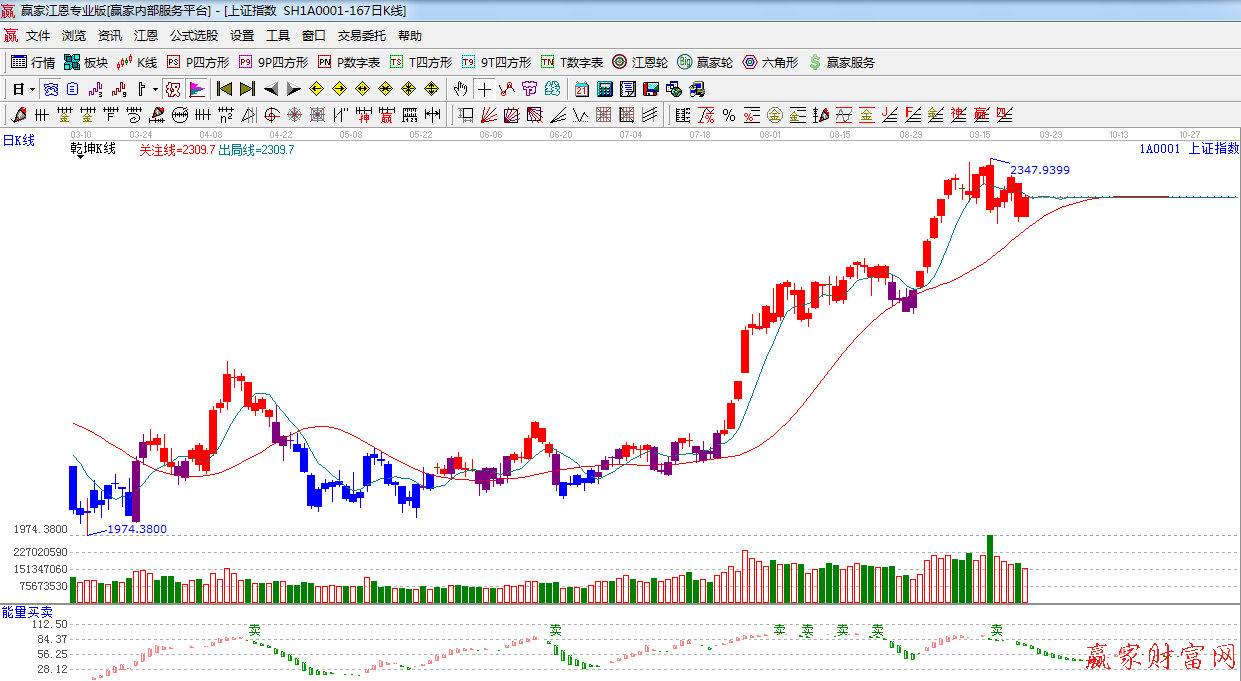 ★依据赢家江恩系统乾坤K线提示:出局线之下,短线看空,波段看多。