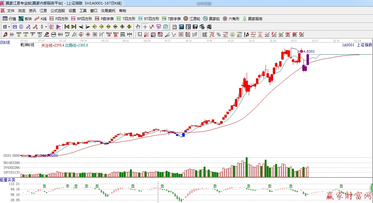 ★依据赢家江恩理论系统乾坤K线提示:紫色警示k线,反弹收复红色关注线,短线看多。