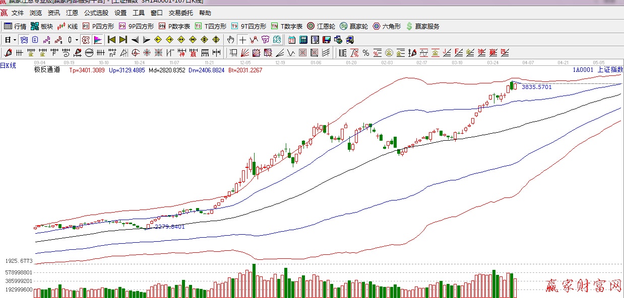 江恩看盘综述:依据赢家江恩技术工具分析得出:周三沪指继续强势上行,收盘突破江恩90度3783点并站上3800点,成交量仍然维持在万亿水平,市场交投依旧活跃,但外轨线之下,顺势的同时并保留一份谨慎,操作上,继续布局滞涨品种以及年报超预期的个股。具体可以关注大消费、环保、医药等年后涨幅相对落后的板块,逢盘中急涨,要理性对待,切莫盲目追高。