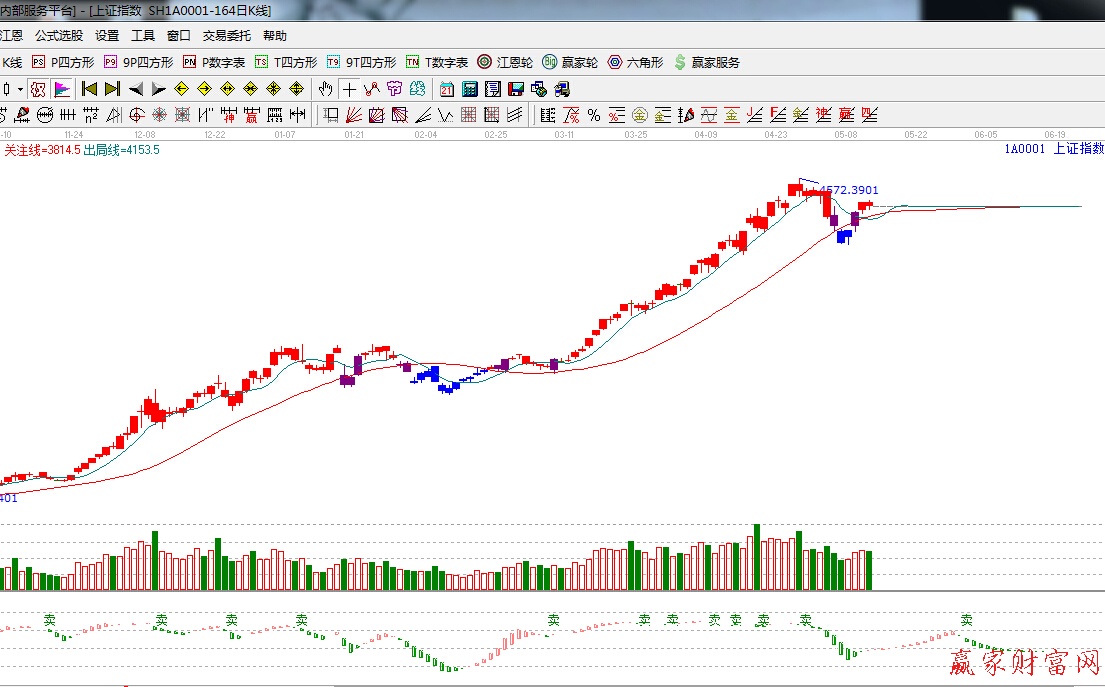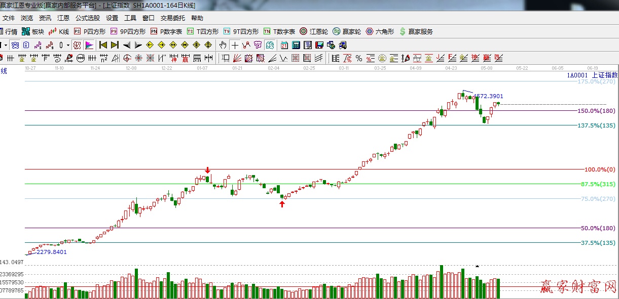 ★依据赢家江恩理论系统波段百分比提示:沪指如期在江恩135度4088点附近,止跌回升,突破180度4300点,4300点转换为支撑位置。
