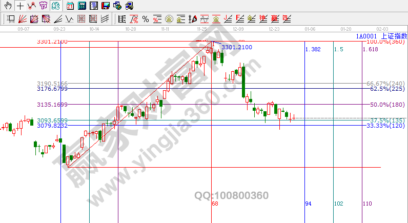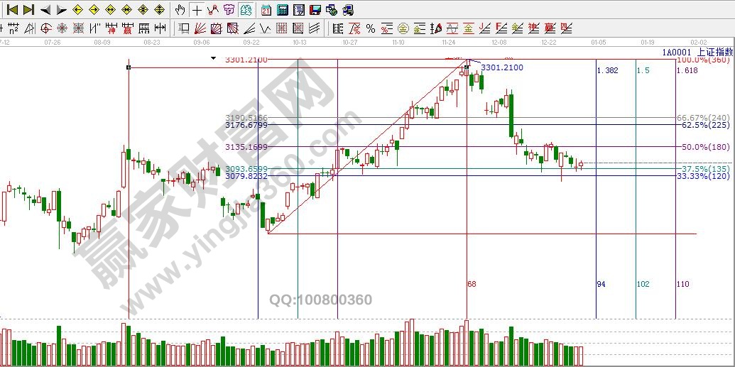 ★依据赢家江恩理论系统黄金时间周期线提示:股指缩量整理,接下来下一时间点是1月5日左右。