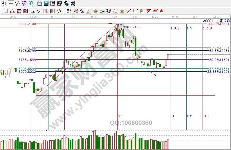 ★依据赢家江恩理论系统江恩波段百分比线提示:在135度3090点支撑止跌回升,站稳180度3135点关键位置,向上关注3176点,60份周期3167点。