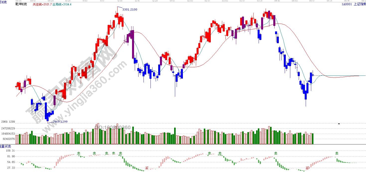 ☆依据赢家江恩理论系统乾坤K线提示:短线出局线之上,红色关注线之下,依据规则,短线看多。