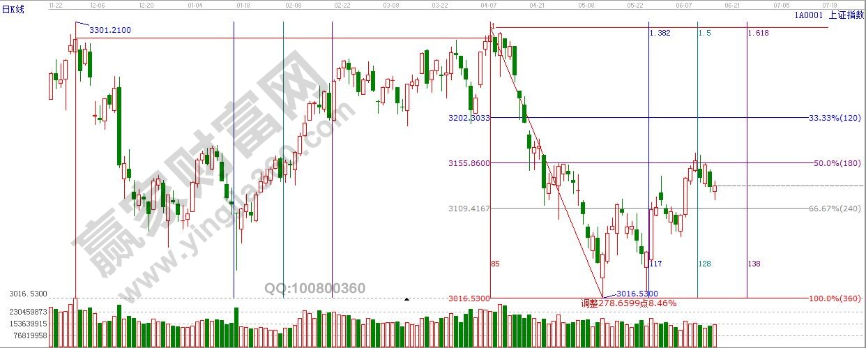 ★依据赢家江恩理论系统江恩波段百分比线提示:百分比下方支撑依然是3109点附近,阻力位180度3155点。