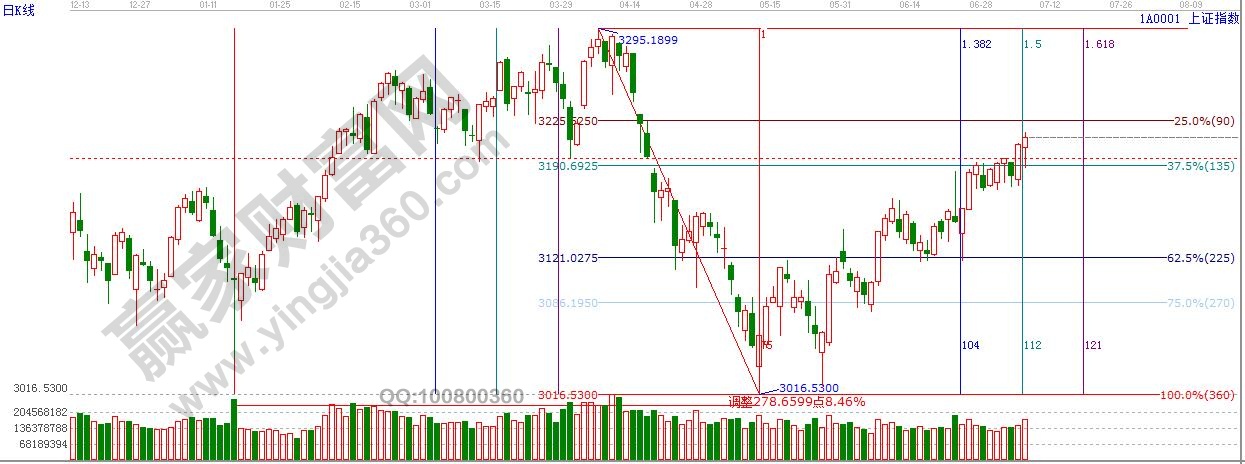 ★依据赢家江恩理论系统极反通道提示:早盘跳水回踩3190,午后再次强势回升,依据极反通道规则,沪指的上方目标位蓝色线在3238点附近。
