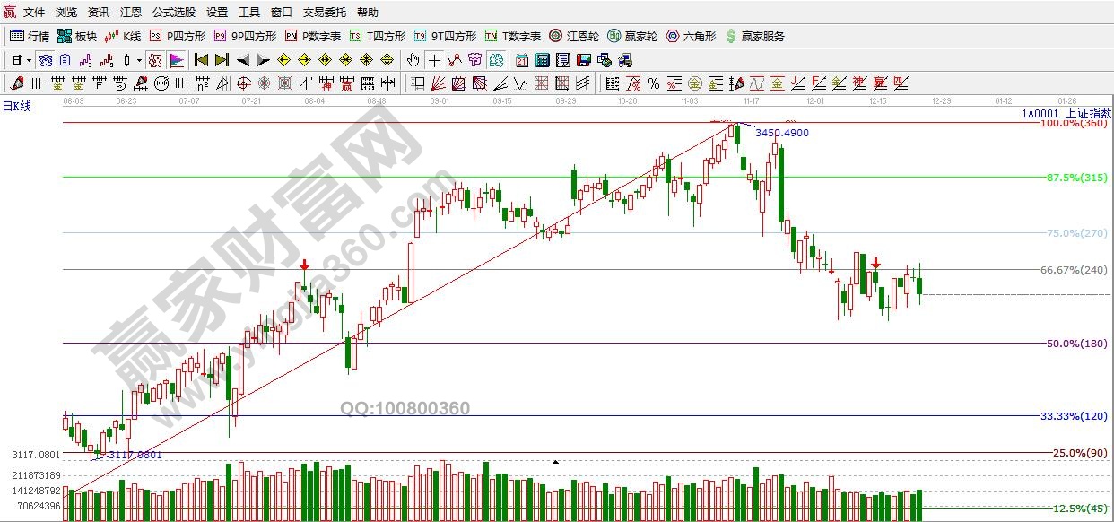 江恩看盘综述:依据赢家江恩技术工具分析得出:周一,早盘指数冲高,在百分比240度3305附近遇阻回落,随后一路震荡走低。沪指跌破了60分生命线3287点,短期重心重新下移。明日短线支撑重点关注3270点,虽说指数基本达到底部区域,但调整还不是很充分,随着时间的推移,周线时间窗口临近,确认性的转折应该很快出现。所以,目前需要耐心等待,并随时做好低吸的准备。