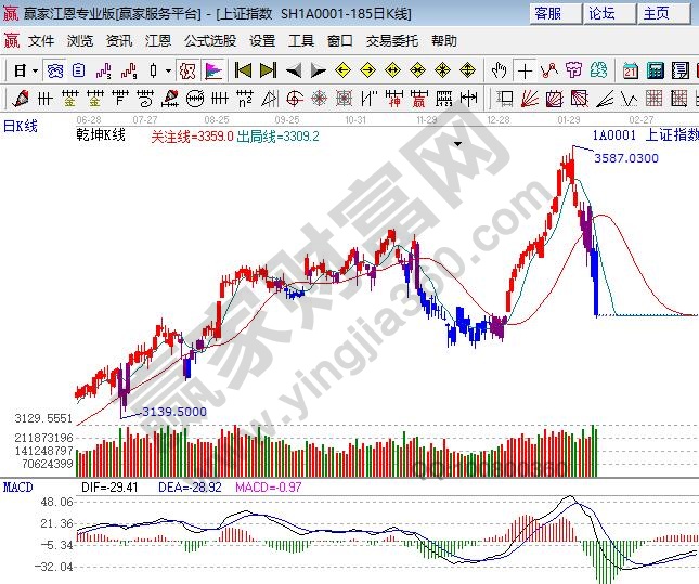 ☆依据赢家江恩理论系统极反通道提示:高开生命线上后一路走低再度一根长阴失守,MACD被带入零轴以下确认波段走弱,依据规则弱势区域稳健者休息。