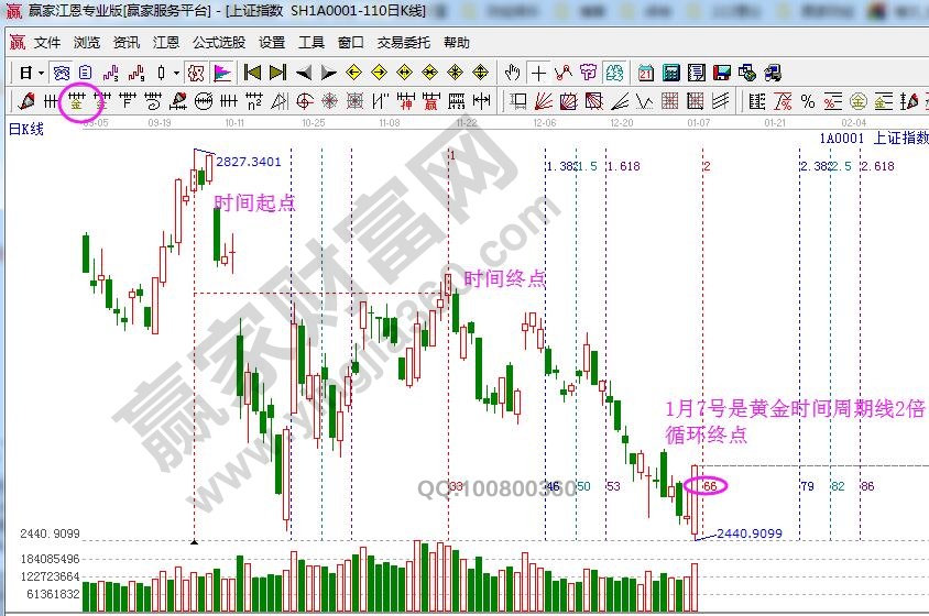 ★依据赢家江恩理论系统黄金时间周期线提示:以近期两个高点2827(2018年9月26日)和2703(2018年11月19日)做黄金时间周期线,倍数时间窗口指向1月3日,遇元旦假期顺延至1月7日。