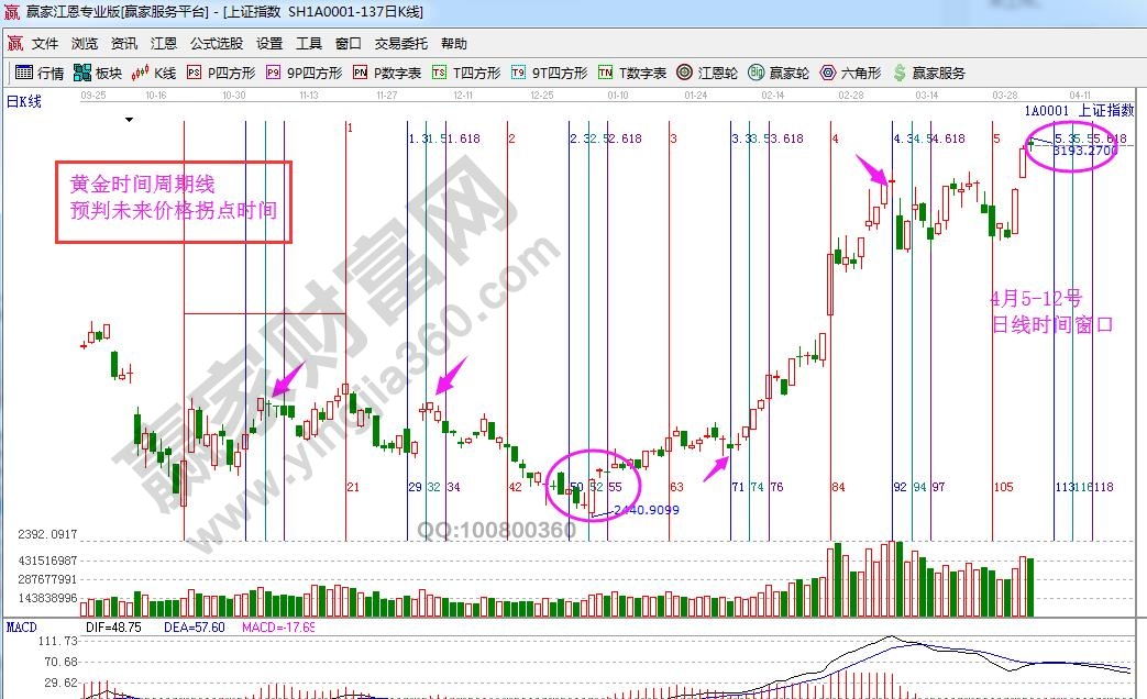 ☆依据赢家江恩理论系统黄金时间周期线提示:以最近一组低高点做图,2018年10月19号(2449点)和2018年11月19号(2703点),3月重要时间点7号、14号、26号已得到时间确认,工具显示4月时间窗口有5、12(10)、24号。