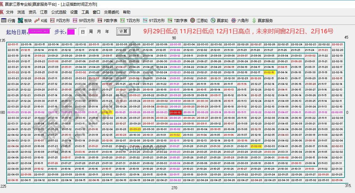上图大盘时间和空间点位全部由赢家江恩证券分析软件得出。