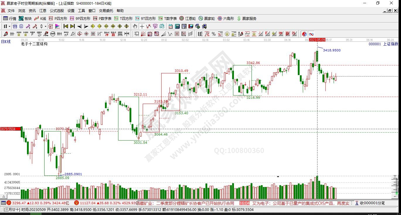 依据赢家时间数列工具展示:依据赢家时间数列所揭示的沪指时间密码,指数次级别时间窗口可关注:5月24日、5月30日。