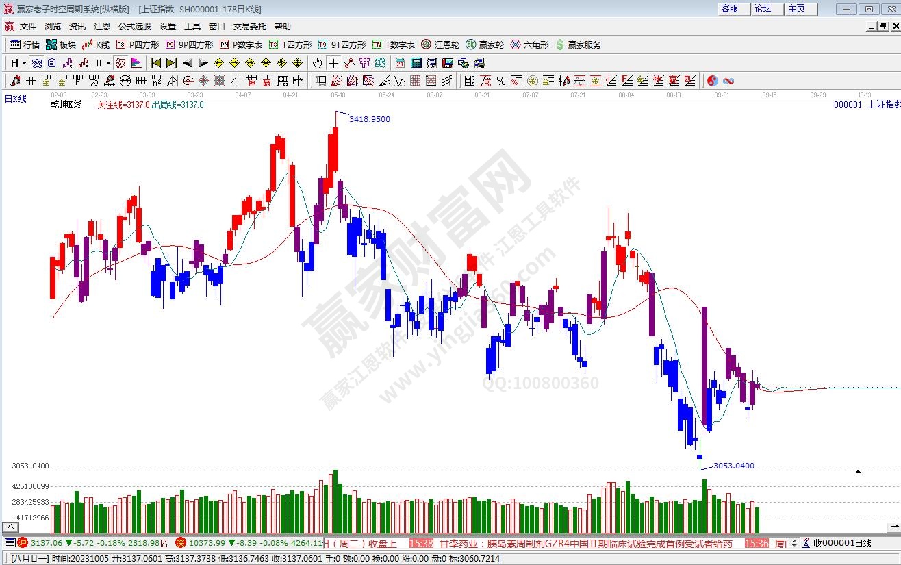 依据赢家十二宫结构模型工具展示:今天指数处于2023年8月25日形成的下跌结构底部线3053.04点上方区域。依据赢家十二宫多空能量守恒规则,今日空方能量主导下跌,下跌如延续,下方多空能量平衡位关注底部线3053.04点。