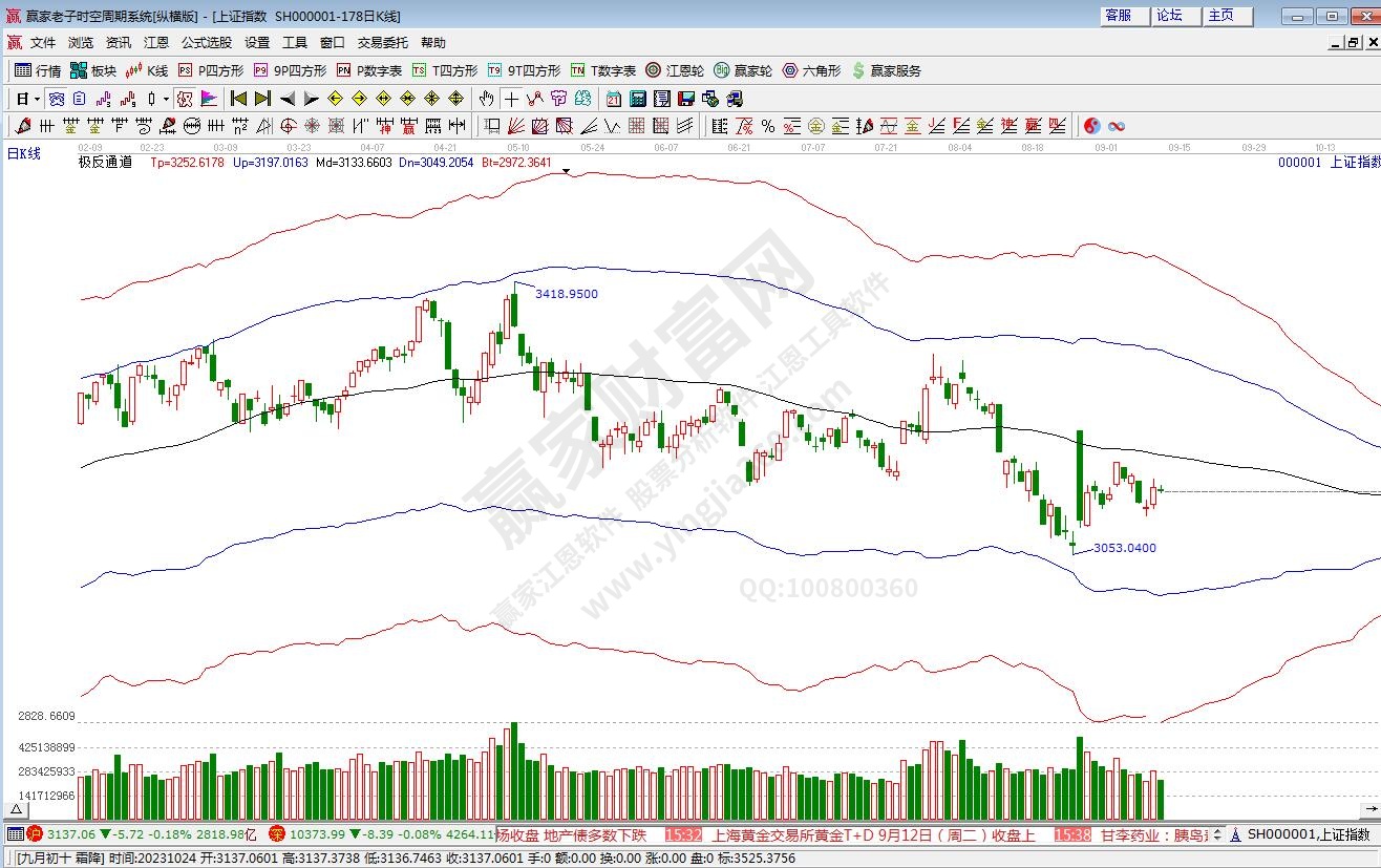 依据赢家江恩极反通道趋势工具展示:当前在赢家极反通道生命线和弱势通道线之间的弱势通道内运行,上攻以短线反弹来应对,上方重要压力为生命线3186.36点,下方重要支撑为弱势通道线2999.21点,弱势通道内运行以轻仓操作或空仓休息为主,等突破生命线转强后再积极操作。